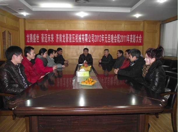 龍騰盛世,豪邁未來(lái),濟(jì)南龍豪液壓機(jī)械設(shè)備有限公司于2011年12月31日于公司總部召開(kāi)了2011年表彰大會(huì),同時(shí)也為慶祝2012年元旦晚會(huì),首先,公司負(fù)責(zé)人張總及廠領(lǐng)導(dǎo)的蒞臨公司在年底召開(kāi)的年終總結(jié)大會(huì),宏觀的總結(jié)了在過(guò)去的2011年的工作、業(yè)績(jī)情況以及在未來(lái)的2012年里的奮斗目標(biāo)和公司的發(fā)展方向。公司銷(xiāo)售部負(fù)責(zé)人也就在2011年的銷(xiāo)售狀況和工作內(nèi)容進(jìn)行了詳細(xì)的分析和具體的數(shù)據(jù)統(tǒng)計(jì),也為新一年的銷(xiāo)售情況制定目標(biāo)和銷(xiāo)售項(xiàng)目;廠里技術(shù)部負(fù)責(zé)人總結(jié)現(xiàn)有的技術(shù)基礎(chǔ),為明年的技術(shù)創(chuàng)新和改革而努力;生產(chǎn)部負(fù)責(zé)人也進(jìn)行了總結(jié)性的發(fā)言,積極配合銷(xiāo)售部的工作,做銷(xiāo)售部堅(jiān)實(shí)的后盾。此外,公司領(lǐng)導(dǎo)也對(duì)優(yōu)秀員工進(jìn)行表彰,激勵(lì)員工為下一年的工作繼續(xù)努力,更創(chuàng)輝煌!