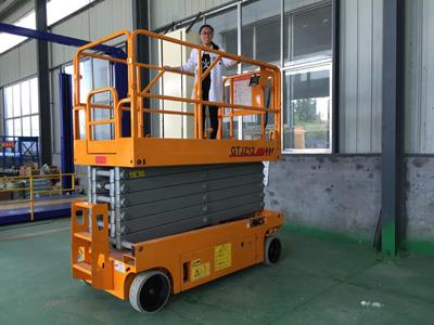 自行剪叉式液壓升降機(jī)具有自動(dòng)行走功能,能夠在不同工作狀態(tài)下,不需外接電源,不需外來動(dòng)力牽引即可升降自如,而設(shè)備的行走轉(zhuǎn)向也只需一人便可完成。操作人員只需掌握好設(shè)備前的控制手柄即可完成設(shè)備前進(jìn)、后退、轉(zhuǎn)向、快、慢速行走和上下等動(dòng)作。自行剪叉式升降機(jī)移動(dòng)靈活,操作方便、省工、省力令高空作業(yè)更方便快捷,是現(xiàn)代企業(yè)高效安全生產(chǎn)之理想高空作業(yè)設(shè)備。