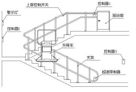 斜掛式輪椅升降機,一種安裝在樓道系統(tǒng)利用電機牽引沿著軌道上下移動并運載乘客的無障礙安全裝置。它由驅(qū)動系統(tǒng)、導(dǎo)軌、繩輪鏈、移動平臺等組成。用于建筑樓道系統(tǒng)中,乘坐輪椅或爬樓梯困難的人員攀爬樓梯的專用設(shè)備。主要由主驅(qū)動系統(tǒng),輔助驅(qū)動系統(tǒng)、主控系統(tǒng)和安全系統(tǒng)組成。