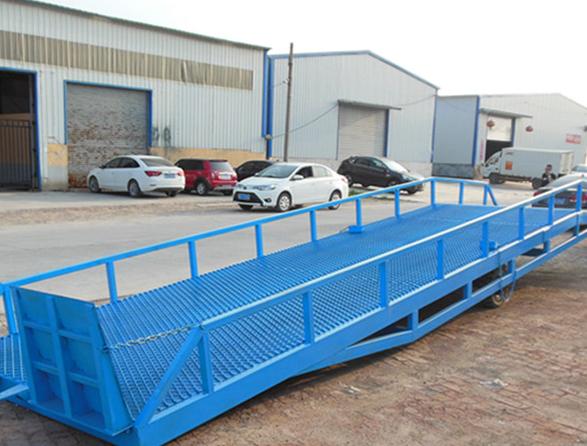 登車橋是用于叉車與貨車之間的搭橋設(shè)備,方便裝卸貨物。最大動負(fù)載:6T ,最大靜負(fù)載:6T ,最大寬度:2M ,最大長度:4M。分類很多,一般分為移動登車橋和固定登車橋。常規(guī):長度11M,寬度2.1M實(shí)心輪胎。