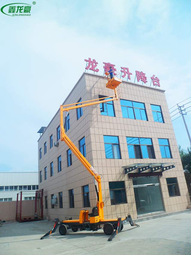 自行曲(折)臂式升降機升高時候是曲折狀態(tài)的,升降平臺的結(jié)構(gòu)采用了機電液一體化、可靠性設計和計算機輔助設計等技術(shù),是一種全液壓驅(qū)動、自行式專用底盤。突破了以往國內(nèi)高空作業(yè)升降機只能采用汽車或起重機底盤改裝設計的限制。自行曲(折0臂升降機,曲臂式往往體積較小,帶載行駛、作業(yè)穩(wěn)定性好。底盤結(jié)構(gòu)突破了傳統(tǒng)的設計理論和方法,通過優(yōu)化上車平臺總體布局與載荷分布,減少了重心偏移。采用獨特的大角度后仰式鉸點結(jié)構(gòu),合理設置多種配重模塊,有效地平衡了工作力矩。采用H型變截面復合箱梁剮性車架和高負荷橡膠輪胎,增加了底盤整體剛度,保證了整機行駛、作業(yè)過程的穩(wěn)定性實現(xiàn)了高空作業(yè)升降機帶載行駛的功能。通過大臂前端托架可以快速安裝舉升裝置或載人平臺,實現(xiàn)物料舉升、起重吊裝和載人高空作業(yè)等功能同時為擴展作業(yè)裝置以及各種工作裝置的快速切換提供了接口。設計的三維旋轉(zhuǎn)托舉裝置,既能夠自動保持被舉升物料的姿態(tài),又可以實現(xiàn)舉升物料在空間內(nèi)任意高度、任意位置和任意方向的調(diào)整要求,速度控制精確靈敏,微動性能好,滿足了大型洞庫內(nèi)高空作業(yè)與通風管道安裝的要求。