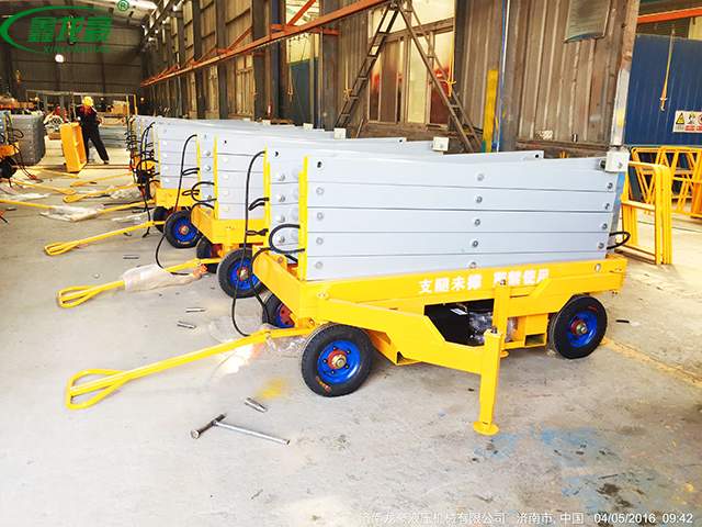 移動剪叉式升降平臺主要技術(shù)特點:臺面鋼板折彎、底架及剪叉結(jié)構(gòu)山鋼定做高強度矩形管材; 標(biāo)準(zhǔn)冷彎槽做道軌,使用尼龍滑塊做導(dǎo)軌輪,接觸面大,升降平穩(wěn),晃動??;液壓油缸 內(nèi)置防爆閥(防止油管斷裂,平臺失速下降),采用進(jìn)口密封圈,經(jīng)久耐用,不泄露;雙層鋼網(wǎng)高壓油管;升降機專用液壓泵站,加裝應(yīng)急下降閥,平臺斷電可手動控制 下降,內(nèi)置溢流閥,可防止上行運動時系統(tǒng)壓力過高,起到超載保護(hù)功能;充氣橡膠輪胎; 電路電器、接觸器羅列連接,加裝熱過載保護(hù),缺相保護(hù)等安全保護(hù)功能;電動上、下電動控制,控制按鈕盒加裝急停按鈕,以保障財產(chǎn)及人身安全,各操作部分使用24V安全控制電壓;軸銷圓鋼配做,調(diào)質(zhì)處理;拋丸、噴砂 除銹處理,除去鋼結(jié)構(gòu)構(gòu)件表面的銹蝕及焊接飛濺,能使鋼構(gòu)件表面產(chǎn)生一定程度的凹凸不平的效果,增大粉末的附著力;使用靜電粉末噴涂;涂層外觀質(zhì)量優(yōu)異,附著力及機械強度強,色澤亮度高,經(jīng)久不褪色。